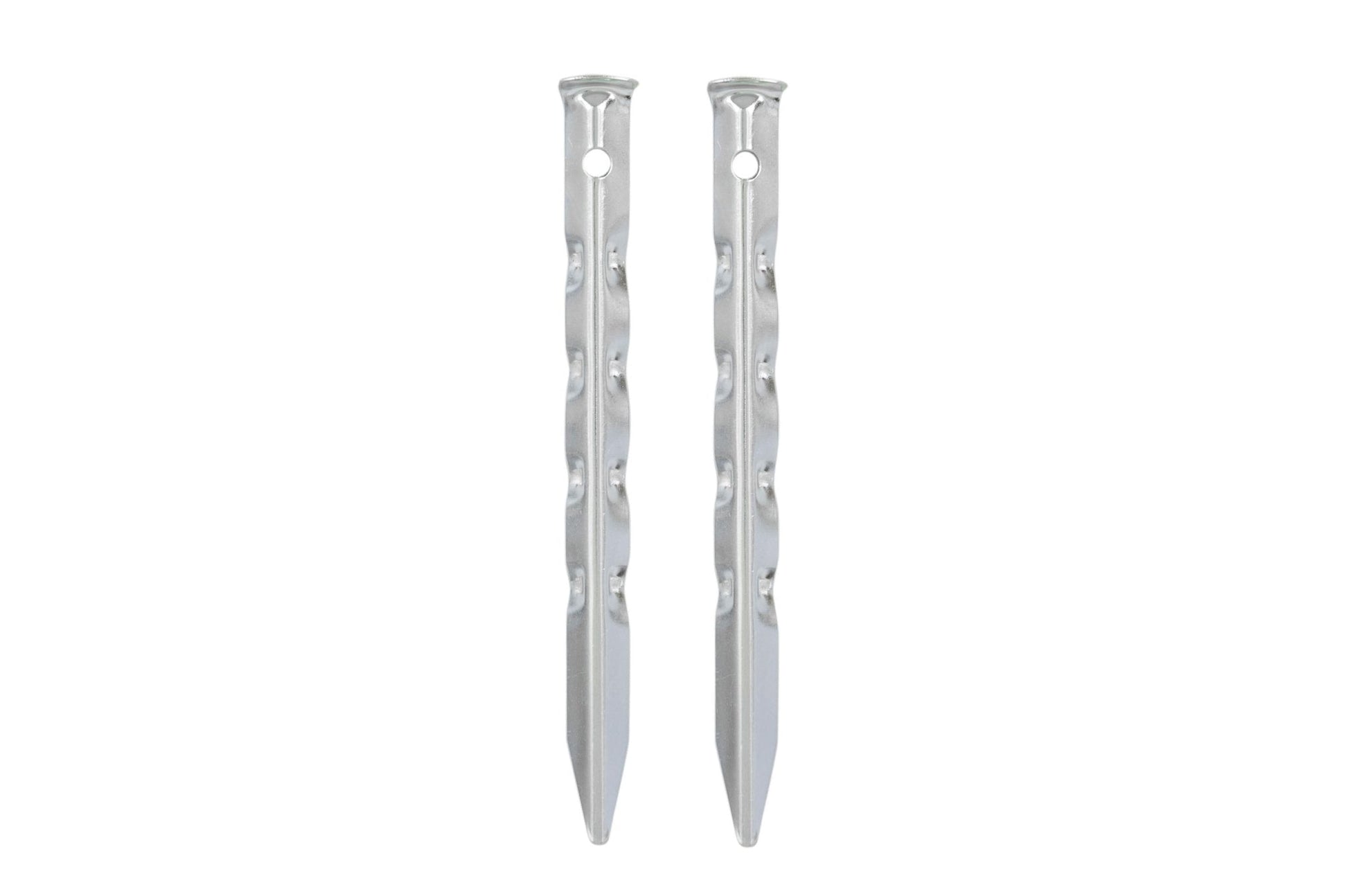 Ein 7,5-Zoll-Riffelwinkel-Stahlpflock. Gekräuselter, gewinkelter Stahlpflock für erhöhte Haltekraft.
