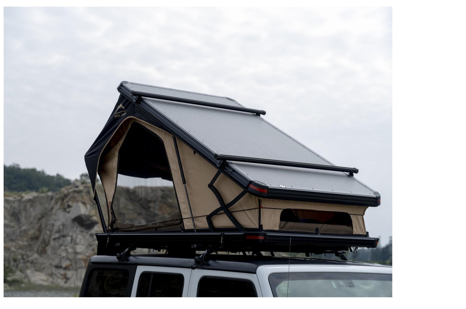 Das neu überarbeitete Bush Cruiser V2 Pro von Wild Land bietet mit seinem geräumigen, dreieckigen Muscheldesign herausragende Kopffreiheit und noch mehr Beinfreiheit – ideal auch für grössere Personen. Die großen, abgeschirmten Seitenfenster ermöglichen einen Panoramablick. Gefertigt aus robustem 600D-Polyester, ist das Zelt wasserdicht, UV- und schimmelbeständig. Die langlebige Aluminiumschale sorgt für weniger Windgeräusche und trägt bis zu 100 kg zusätzlich auf dem Deckel. Mit dem patentierten Gasdruckfeder-Mechanismus ist es einfach und schnell auf- und abzubauen. Der Innenraum bietet Platz für 3 Personen, mit einer 7 cm dicken Matratze für maximalen Schlafkomfort. Weitere Highlights sind die 3 gut belüfteten Eingänge (wählbar je nach Fahrzeugart), abnehmbare Dachträger, Schuhtaschen und eine stabile Aluminium-Leiter.