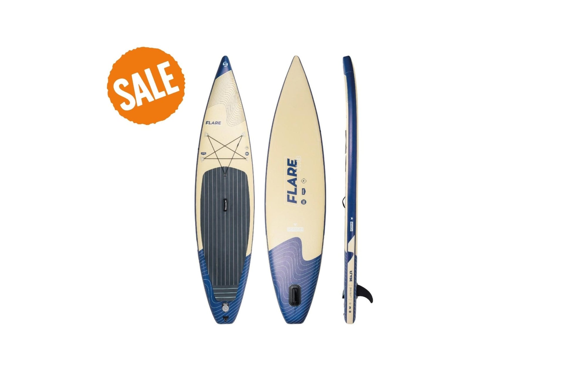 Das Flare 11.8 ist die leichtere und etwas einfachere Version des Flare Pro. Das Board ist für viele Einsatzbereiche geeignet und wird fast jedem Allround-Anspruch gerecht. Der Shape mit der breiten Standfläche und der schlanken Nose geben dem Board Standstabilität auch bei geringen Geschwindigkeiten, was das Spielen auf dem Wasser erleichtert. Die Form eines langen Tropfens lässt das Board aber auch gut gleiten. Da die Standfläche viel Volumen hat, trägt das Board auch etwas mehr Belastung. Die grosse EVA Standfläche ist mit einem trittsicheren Prägemuster ausgestattet. Das Board kann bei Niedrigwasser mit einer Flexfin gefahren werden, ohne die Gefahr das Finnen abbrechen. Somit ist man auch auf Flüssen gut unterwegs.