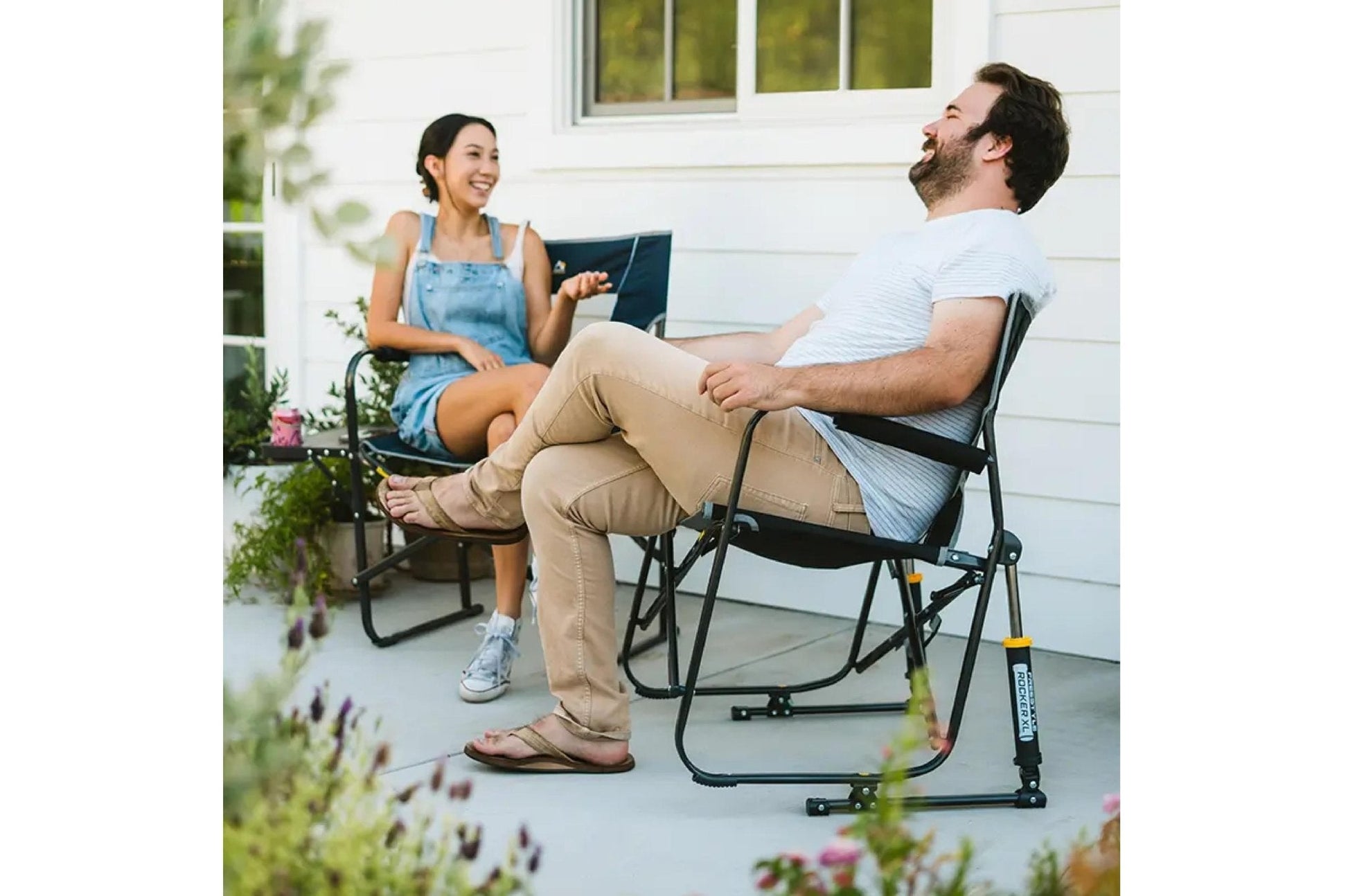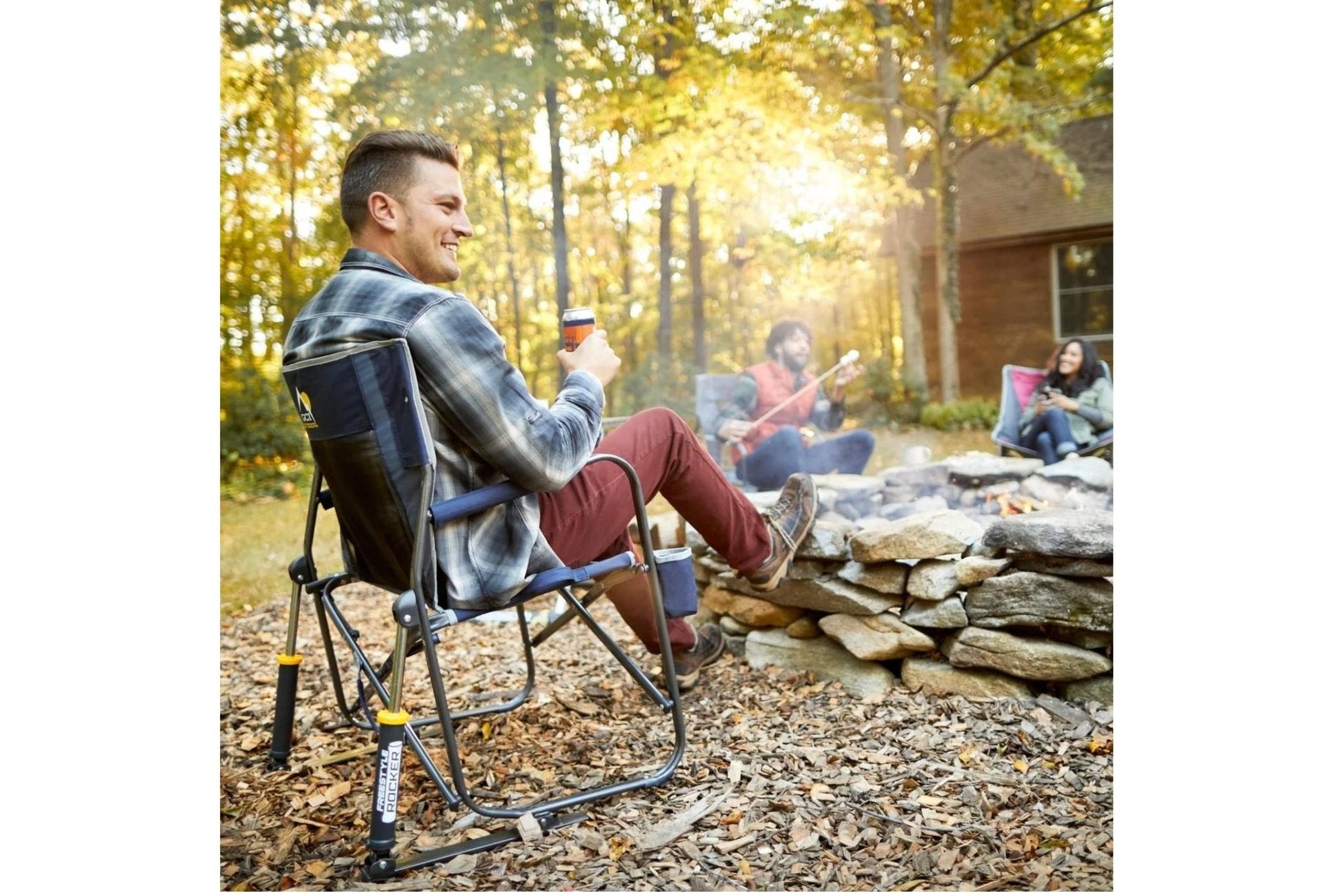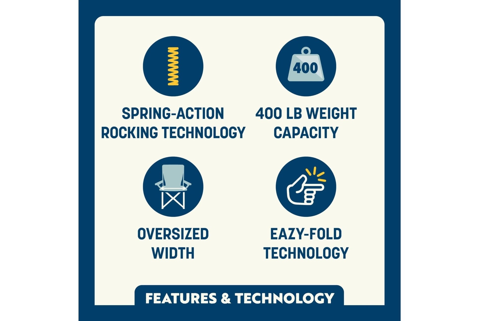 Schaukeln Sie bequem in der Natur. Mit dem Freestyle Rocker XL genießen Sie Komfort und Bequemlichkeit bei jedem Ausflug. Der Schaukelstuhl hat eine breite Sitz- und Rückenlehne und ist bis zu 180 kg belastbar. Dank der patentierten Spring-Action Rocking Technology™ schaukeln Sie sanft an so gut wie jedem Ort. An der rechten Seite des Freestyle Rockers ist ein Getränke- & Handyhalter angebracht, die Ihr Getränk und Smartphone sicher halten. Der Schaukelstuhl hat außerdem einen praktischen Tragegriff, eine luftige Rückenlehne aus Mesh und lässt sich mit der patentierten Eazy-Fold™ Technologie einfach auf- und zuklappen.