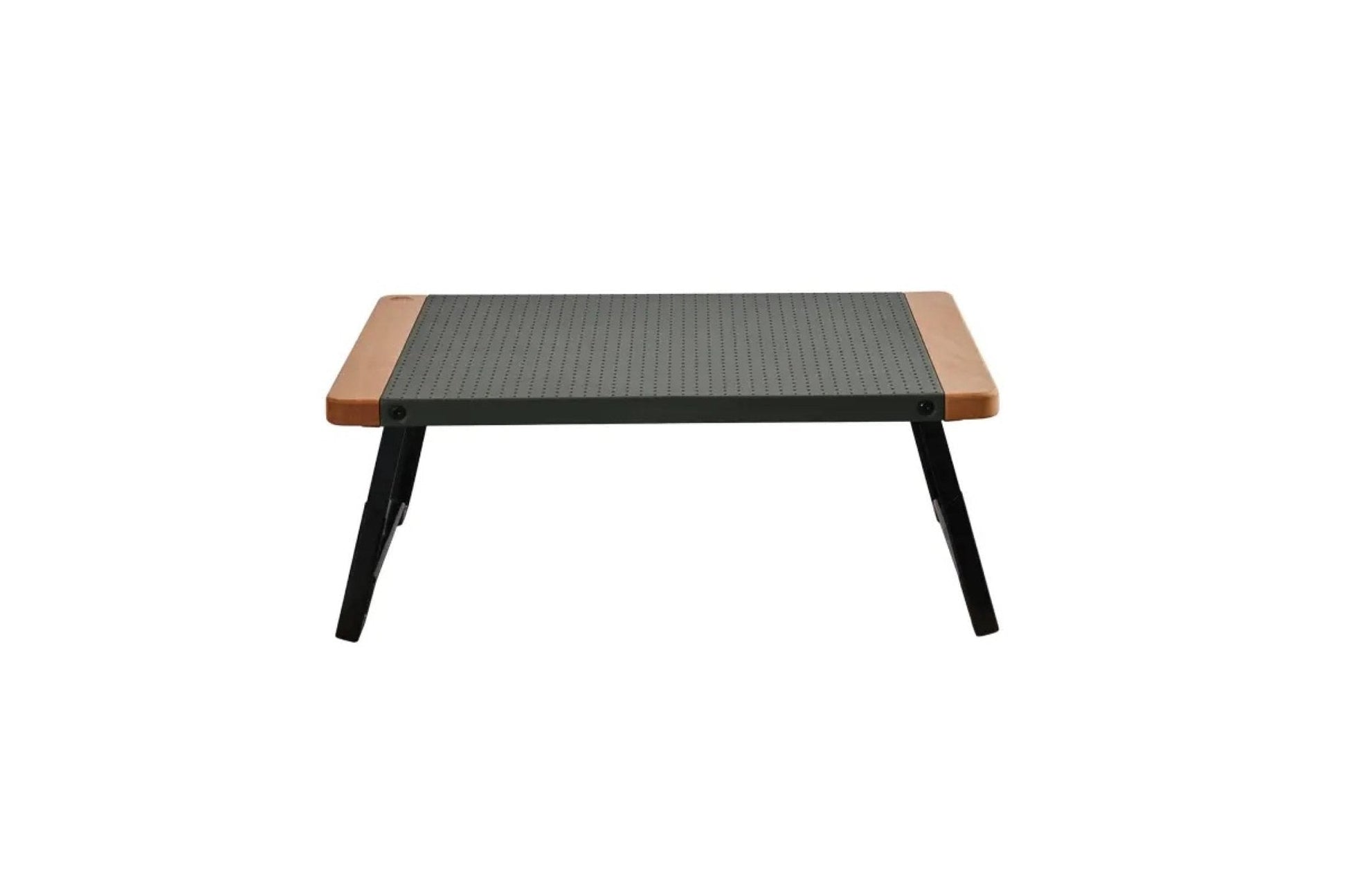 Die robuste Struktur ermöglicht ein einfaches Zusammenklappen und Entfalten in Sekundenschnelle. Mit einer hochwertigen Aluminium- und Holzoberfläche bietet er eine angenehme Textur. Die Beine sind mit einer speziellen Beschichtung versehen, die kratz- und rutschfest ist. Kompakt verpackt in einer robusten Tragetasche für einfachen Transport und Lagerung.