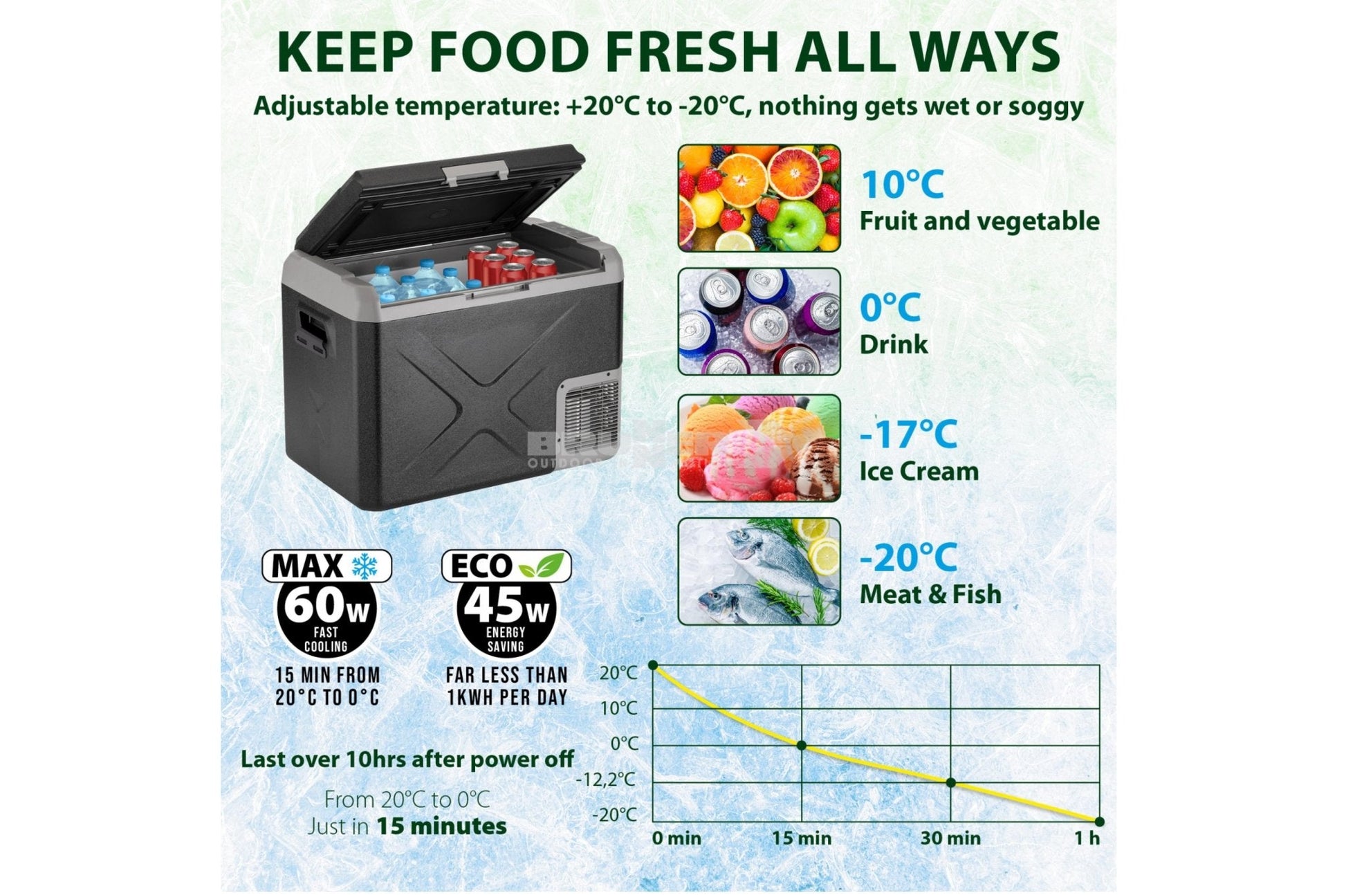 Neue bivalente tragbare Kühl-/Gefrierkombination mit einem einzigen Fach und einem modernen und kompakten Design. Ausgestattet mit einem robusten, stoßfesten Kunststoffgehäuse mit hoher Isolierkapazität und einer digitalen Anzeige zur Temperaturkontrolle. VORTEILE:- Geräumig, zur Aufbewahrung von Lebensmitteln und Getränken für mehrere Personen- Hohe Kühlgeschwindigkeit- Präzise Regelung über Digitalanzeige- Modernes und funktionelles Design- Großer Temperaturbereich- Niedrigste erreichbare Temperatur: -20°C- Leise, geringer Verbrauch.