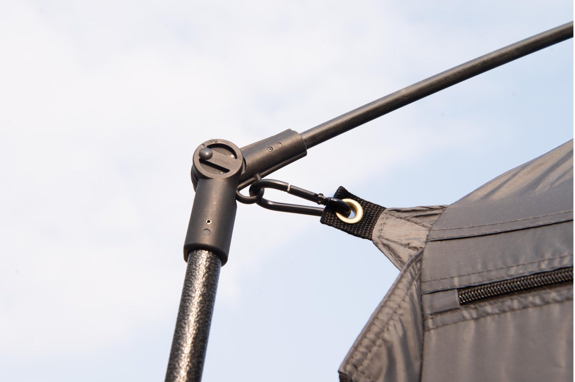 | Stangen | Schnellaufbau-Mechanismus, Stahlstange mit Spezialbeschichtung, Glasfaserstange oben |