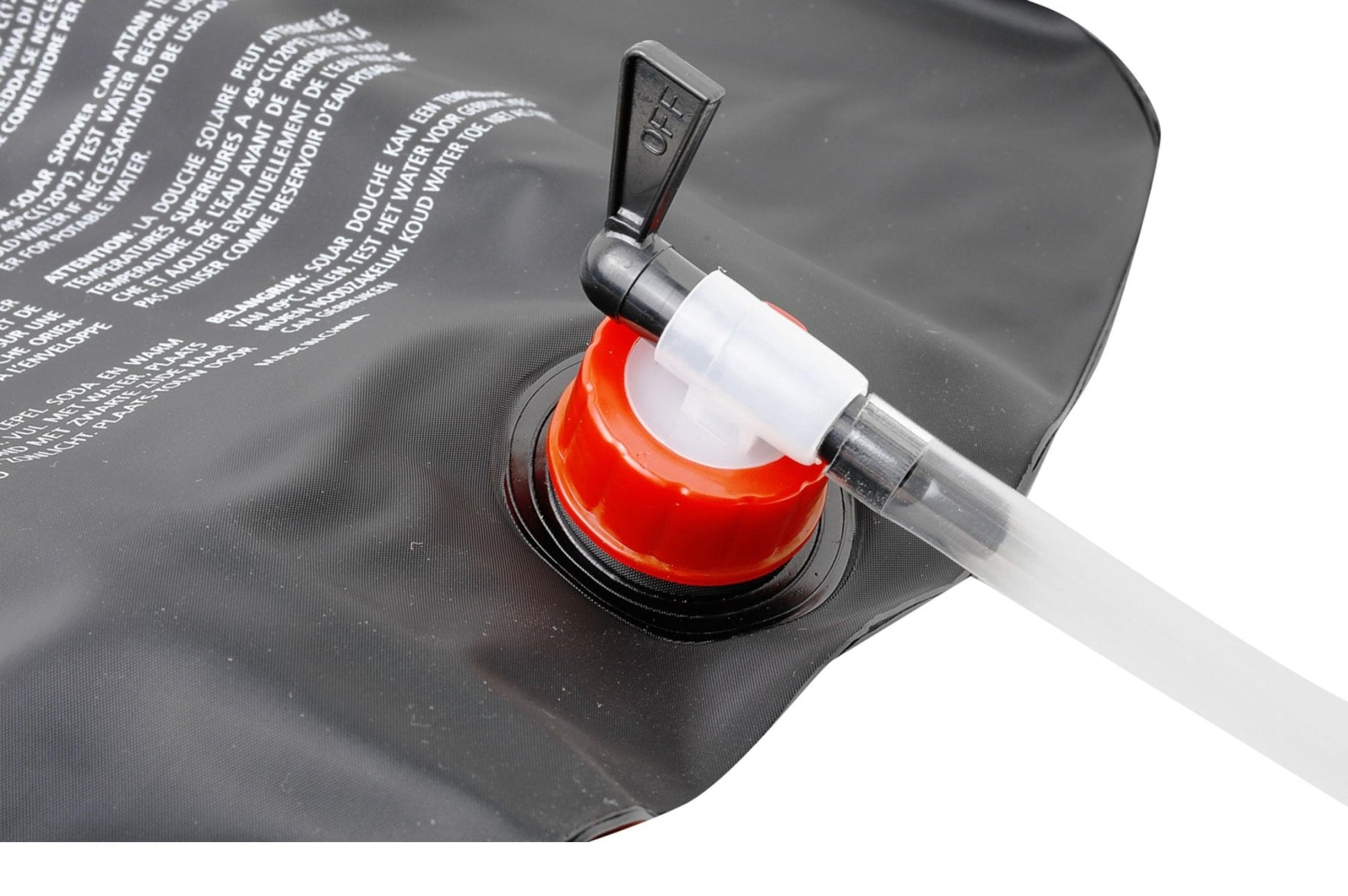 Solardusche aus atoxischem PVC mit regelbarem Wasserdurchfluss und Trage/Handgriff. Die Solardusche kann problemlos an diversen Gegenständen wie z.B. Bäumen oder Autos aufgehängt werden. Dank des schwarzen PVC Materials wärmt sich das Wasser im Beutel schnell auf, wenn die Solardusche an der Sonne ist.