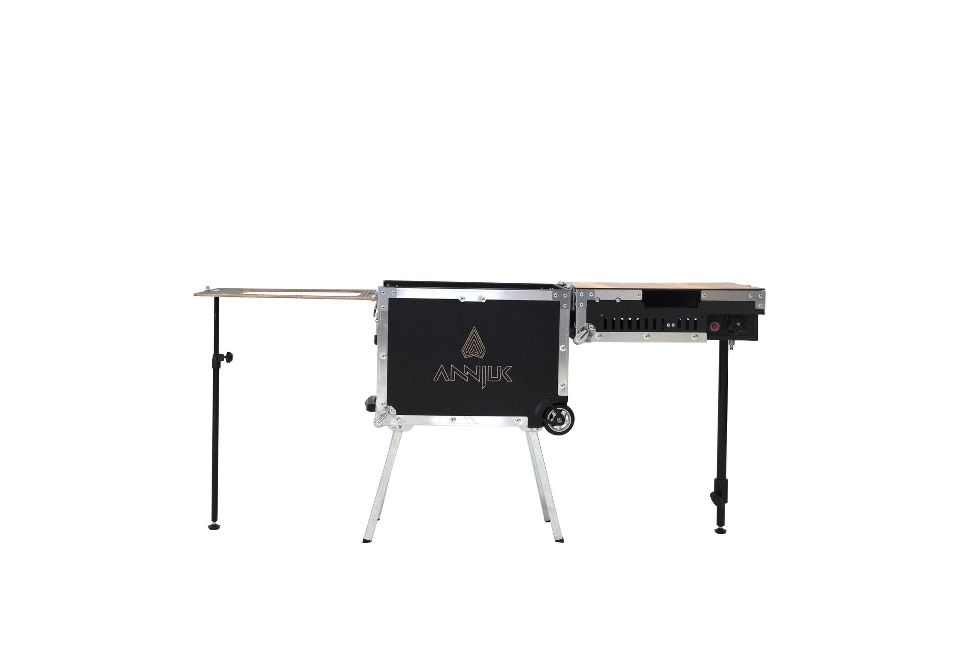 | Scope of delivery | 1x Wasserpumpe, 1x Waschbecken Chrom, 4x Hauptplattformbeine (32 cm), 2x Stützbein Abdeckung Kochfeld, 1x Abwasserablaufschlauch, 2 Räder, 2 Tragegriffe, 1x Ziehgriff ausziehbar, 1 Stoff Schutzhülle, 1 wiederverwendbare Holzbox Transport |
