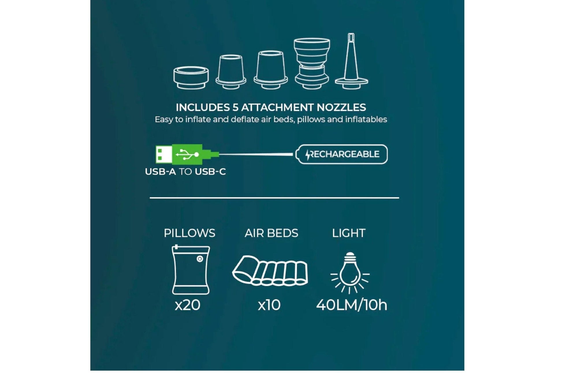 • Ideal für Luftmatratzen, Kissen und mehr