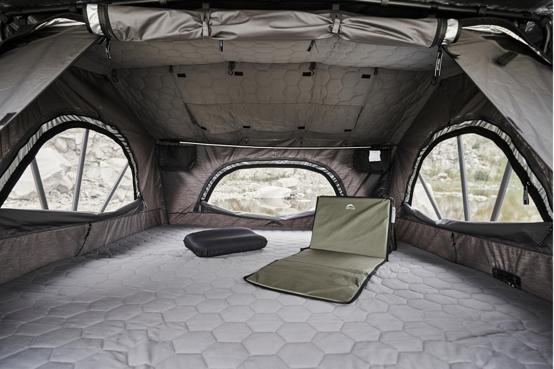 Das Wild Cruiser 160 bietet viel Platz, grosse Lüftungen und eine Doppelwandkonstruktion. Das Wild Cruiser 160 ist wie alle Wild Land Dachzelte aus hochwertigem 210D Rip-Stop Polyoxford mit einer PU3000mm / Silberbeschichtung ausgestattet. Dazu ist der ausgesetzte Aussenstoff zusätzlich mit einem UPF 50+ Filter versehen. Durch den UPF Filter wird der Stoff nachhaltig geschützt und behält die wichtigen Funktionen. Das Dachzelt ist in nur wenige Minuten und mit wenigen Handgriffen in 3-6 Minuten aufgestellt. In fahrendem Zustand darf das Dachzelt, die im Fahrzeugausweis des KFZ notierte Dachlast nicht überschreiten. Hier einige wichtige Bullet-Points: - Geeignet für jedes Fahrzeug mit einer Dachlast von 50kg - Schneller Auf- und Abbau des Zeltes durch einfache Aufbauschritte - Grosser Innenraum für 2-3 Personen - Grosse Fenster auf allen 4 Seiten sorgen für eine gute Belüftung und verhindern das Eindringen von Insekten - Überdachter Eingang - 8 cm Schaumstoffmatratze mit hoher Dichte bietet ein komfortables Schlaferlebnis - Zwei große Schuhtaschen auf beiden Seiten der Eingangstür - Die Teleskop-Leiter aus Aluminium ist mit dem Rahmen verbunden und kann bis max. 150kg belastet werden - Zwei verstellbare Aluminium-Stützstangen halten das Dachzelt stabil.