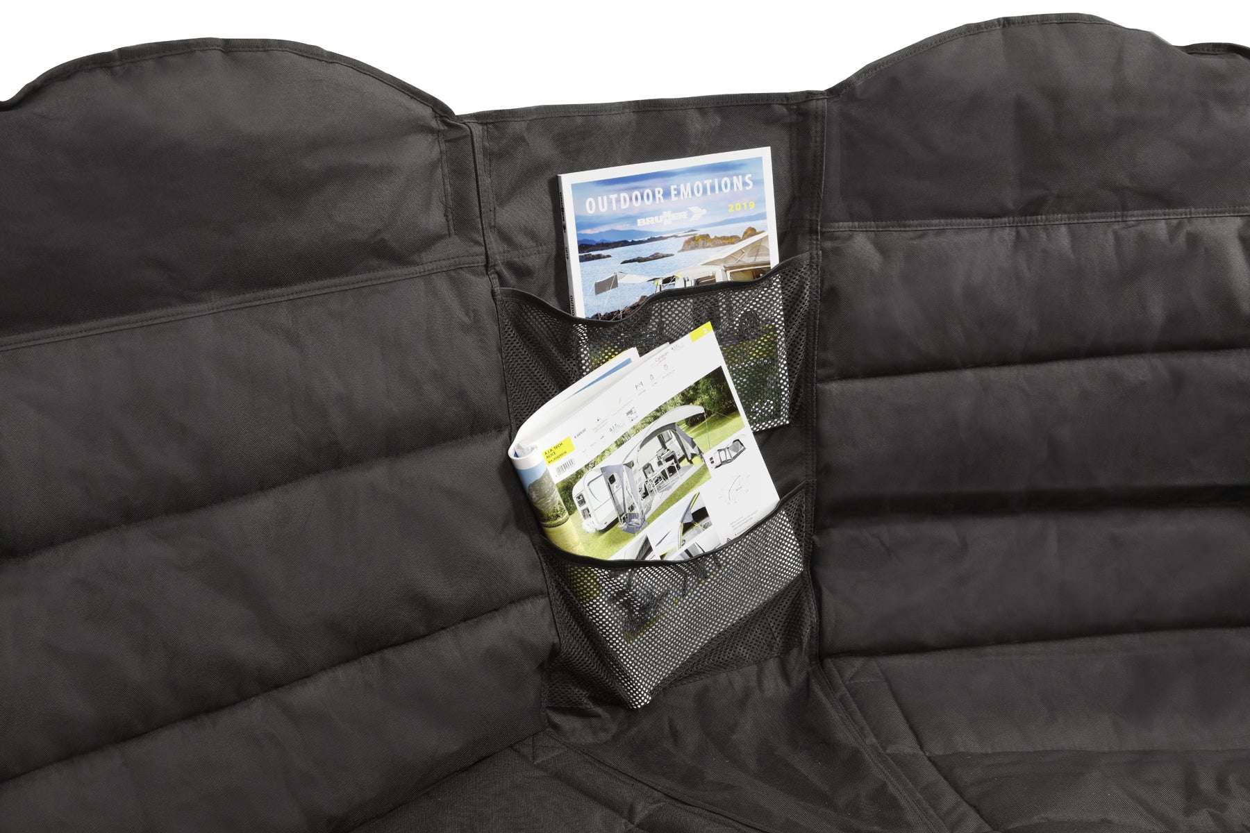 Neu entwickeltes, sehr komfortables 2 Personen-Sofa mit leicht abgewinkeltem Faltgestell. Ideal um den Vorraum von Zelten oder Vorzelten entspannt zu geniessen. Mit zentral angebrachtem Organizerbereich mit 2 Gazetaschen. Bequem gepolsterter Sitz- und Rückenbereich. Sekundenschneller Auf- und Abbau ohne spezielle Montage. Inklusive Packsack für Aufbewahrung und Transport.