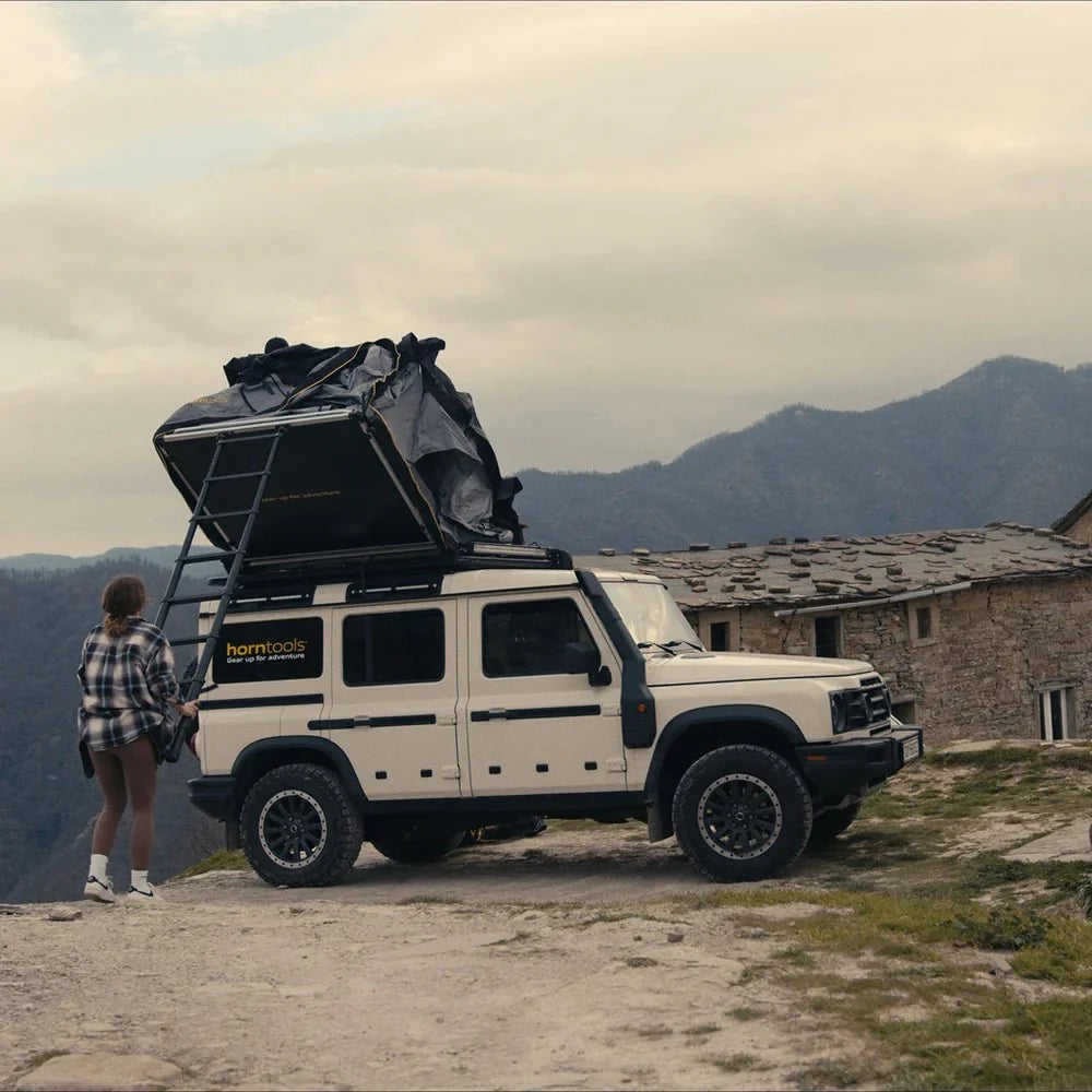 Das horntools Dachzelt Elements vereint langjährige Erfahrung im Bereich Dachzelt und bietet alles, was auf einem Overlanding & Camping Abenteuer benötigt wird. Es kommt als eines der fortschrittlichsten Dachzelte mit einigen spannenden neuen Features auf dem Markt.