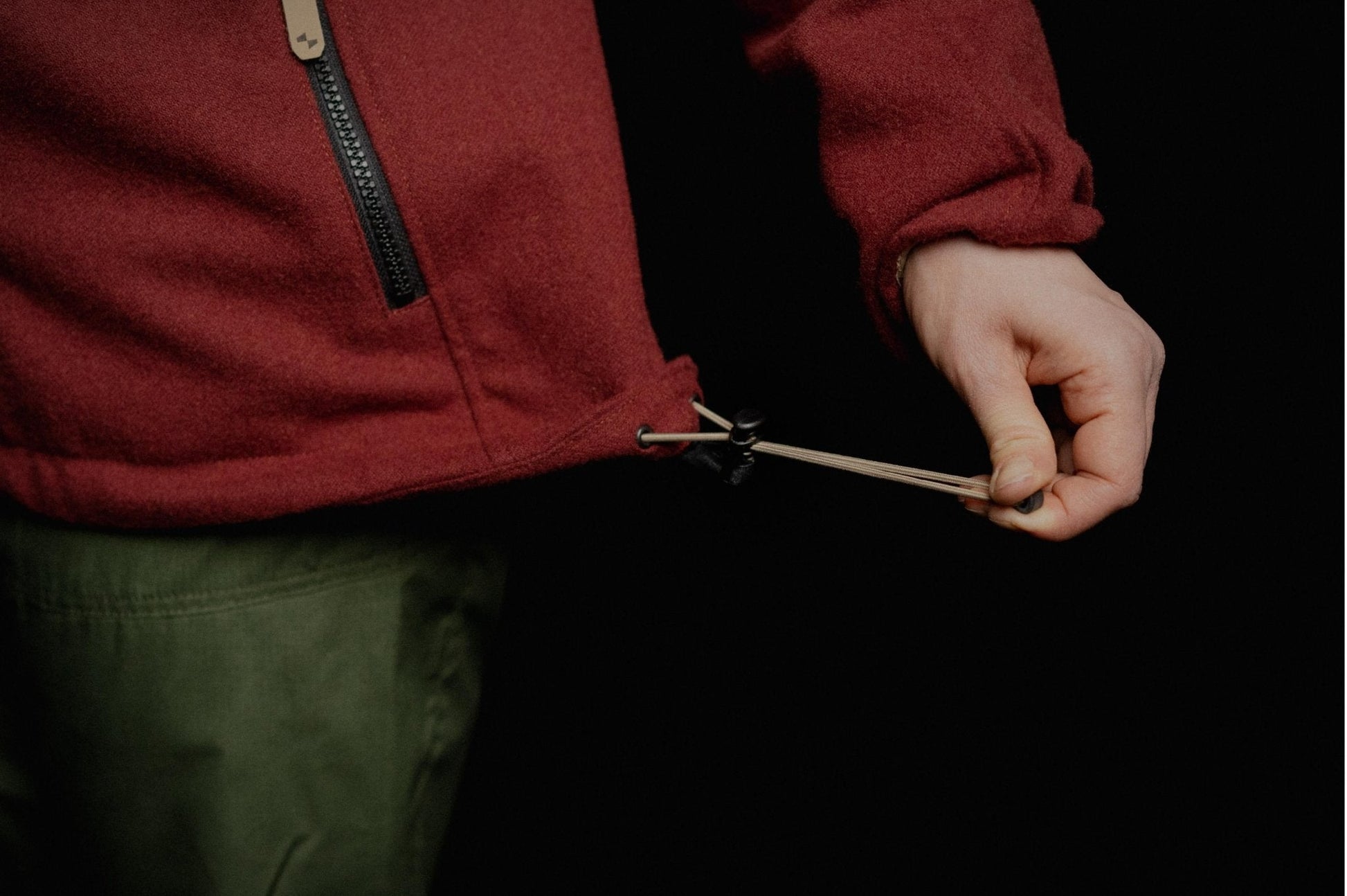 Eine funktionelle, leichte Wolljacke für Frauen. Diese Jacke kann als Mid-Layer oder allein verwendet werden. Das Material besteht zu 70 % aus recycelter Wolle und zu 30 % aus Polyester. Dieses Material ist waschbar und hoch atmungsaktiv.