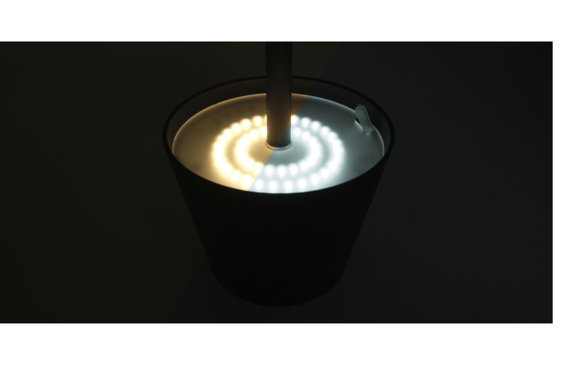 • Wiederaufladbare Tischlampe für den Außenbereich mit modernem Design.