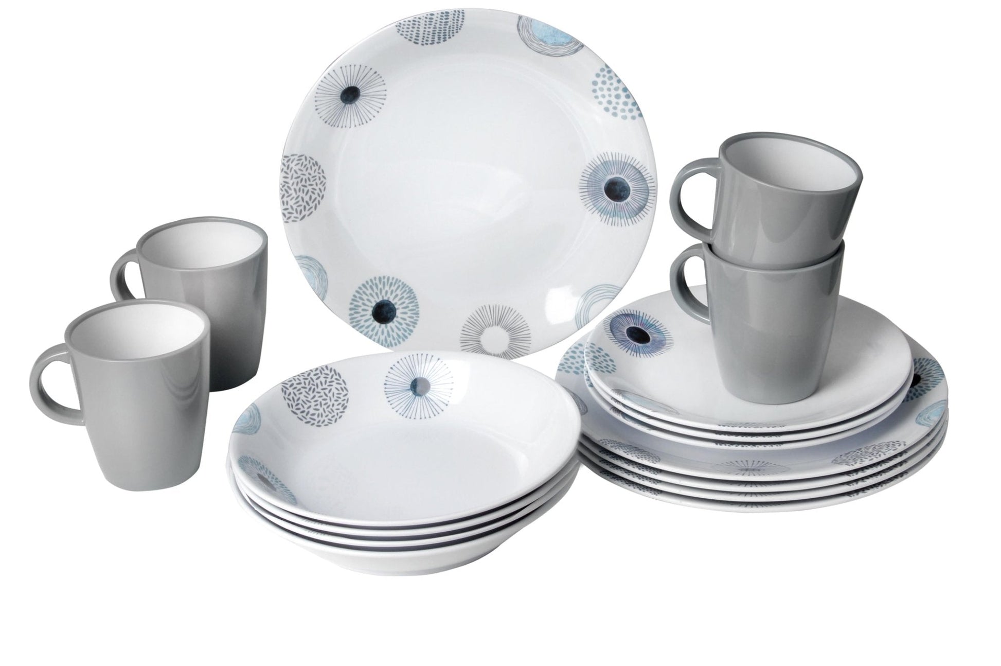 Tauchen Sie ein in die Welt des modernen Geschirrs mit unserem exquisiten 16-teiligen Geschirrset aus neu entwickeltem Melamin/Mineralgemisch. Es vereint Stil, Haltbarkeit und praktische Handhabung perfekt für den täglichen Gebrauch oder besondere Anlässe.