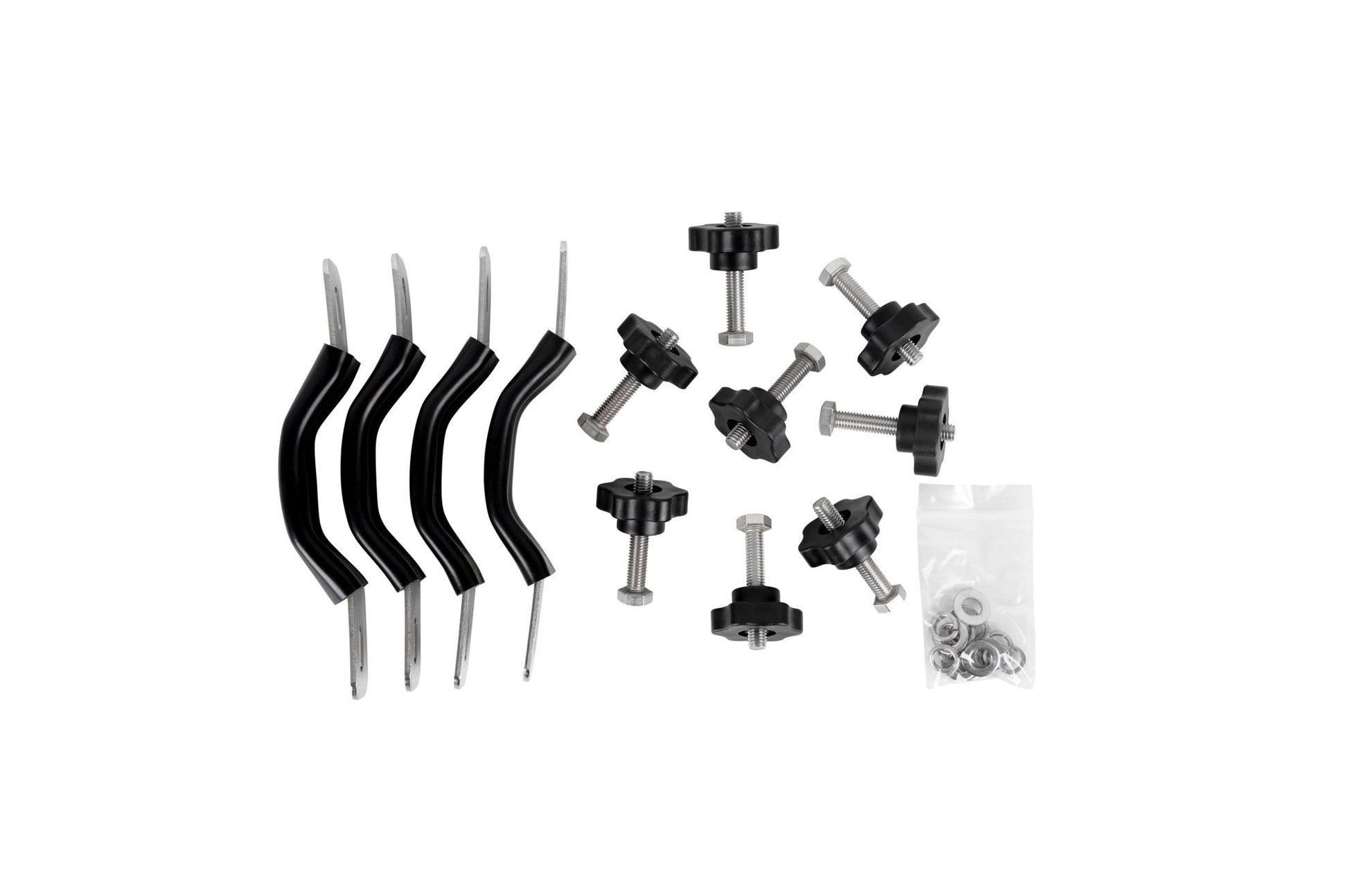 Schrauben Set zur Befestigung des Dachzeltes auf dem Dachträger. Anti-Rutsch Gummierung und rostfreier Stahl.