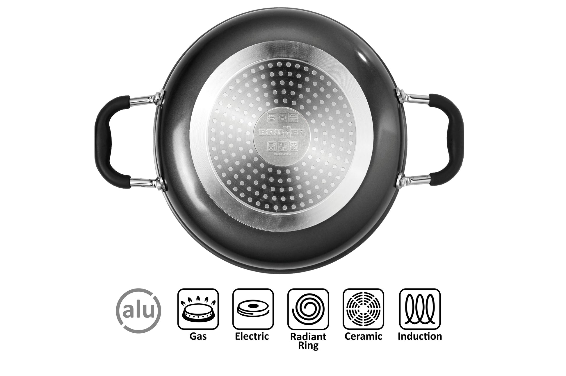 | Inhalt | 1 Topf ø 22 cm - 5,3 l, 1 Pfanne ø 22 cm - 2 l, 1 Pfanne ø 20 cm -1,7 l, 1 Topf ø 18 cm - 1 l, 1 Deckel ø 22 cm, 1 Deckel ø 22/20/18 cm, 1 Griffzange und 1 Gurt |
