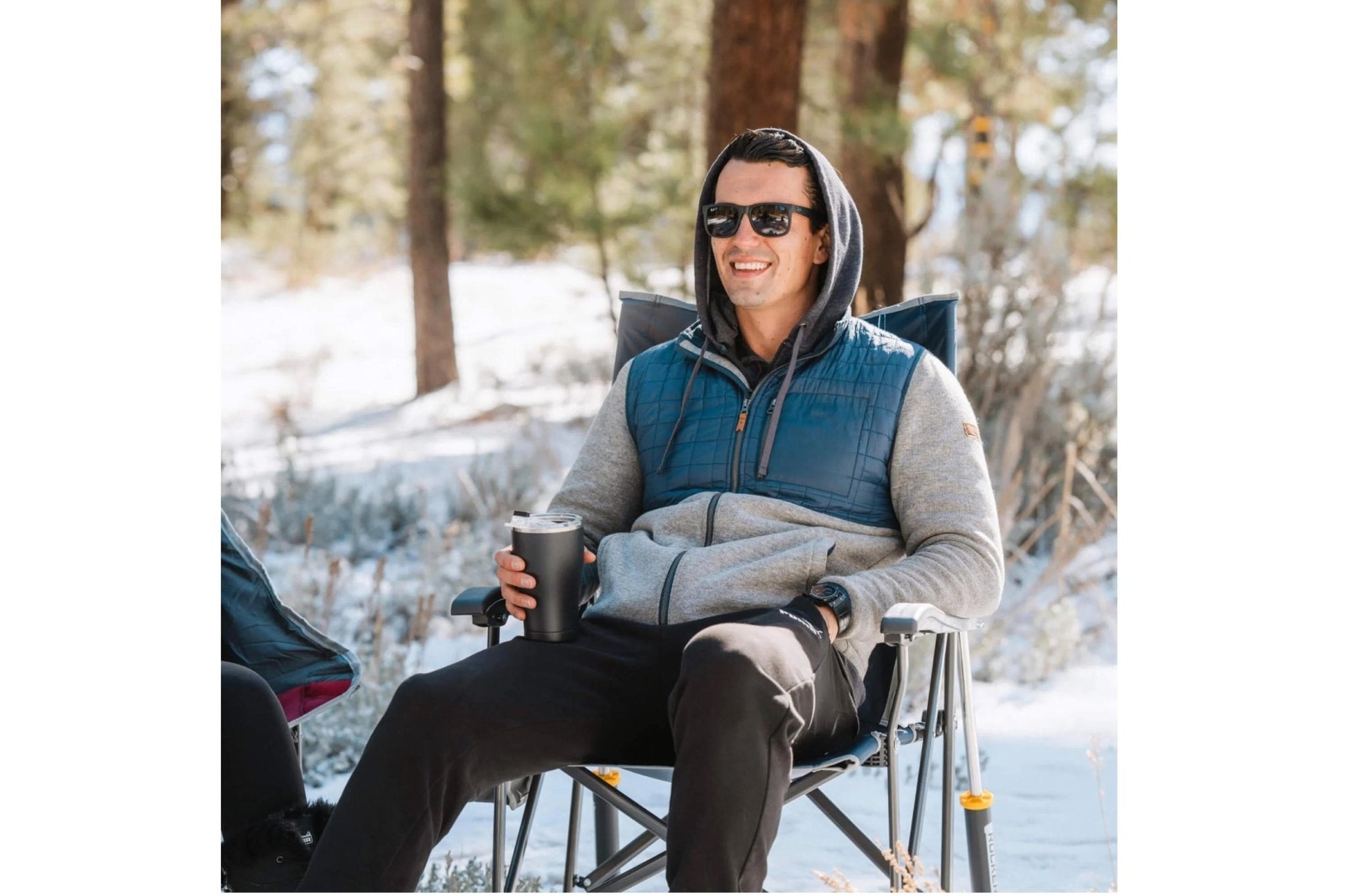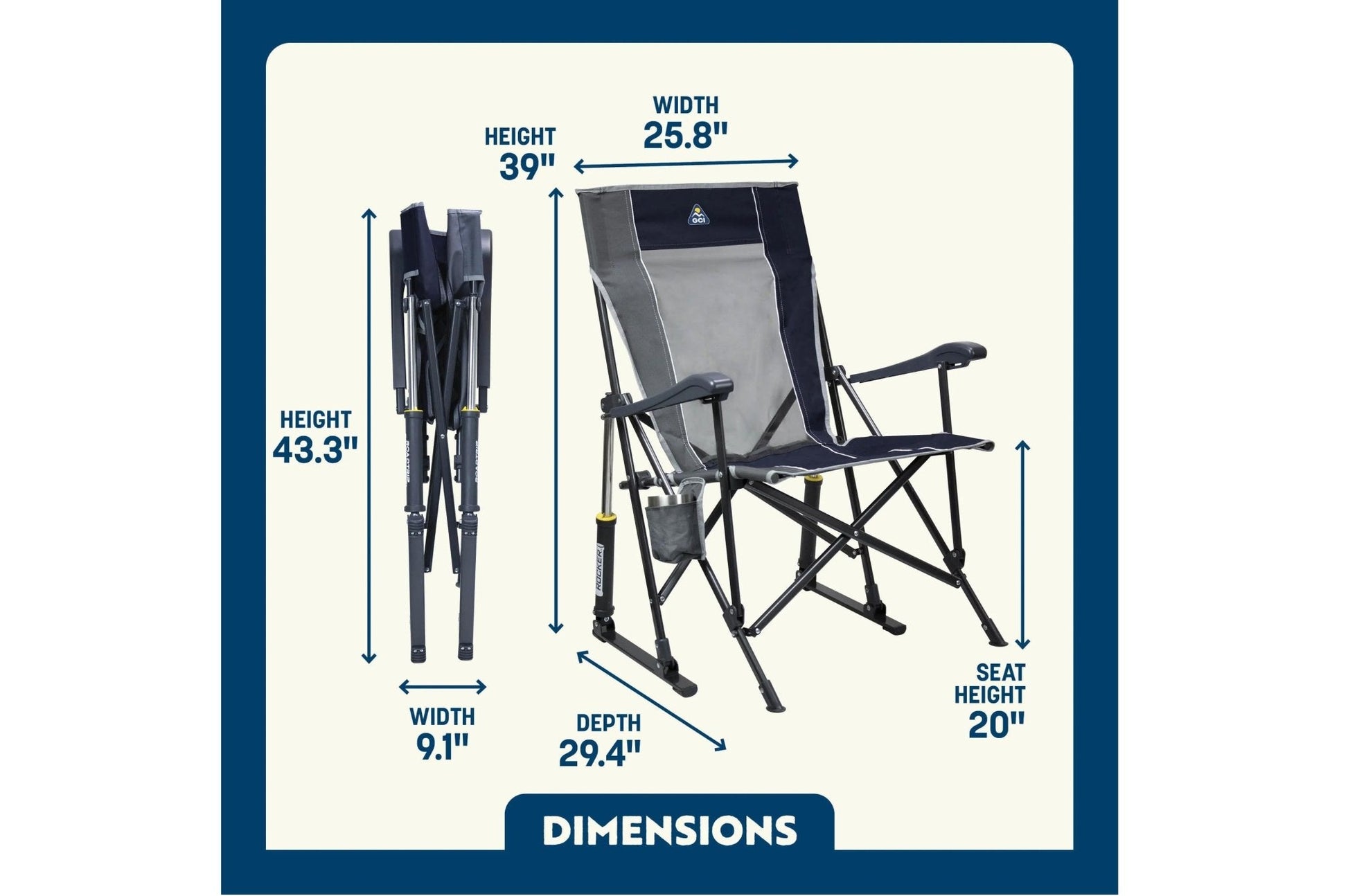 Schaukelstuhl für draußen: Der RoadTrip Rocker mit Faltfunktion. Du suchst nach einem Schaukelstuhl für draußen, der dir Komfort, Innovation und Mobilität bietet? Dann ist der RoadTrip Rocker genau der Richtige für dich. Der RoadTrip Rocker ist ein vollwertiger Schaukelstuhl, der sich mit einem Handgriff zusammenfalten und in einer Tragetasche verstauen lässt. So kannst du ihn überallhin mitnehmen, wo du entspannen möchtest. Ob im Garten, auf dem Campingplatz oder am See, der RoadTrip Rocker ist dein perfekter Begleiter. Er verfügt über die patentierte Spring-Action Rocking Technology™, die dir ein sanftes und angenehmes Schaukelerlebnis ermöglicht. Außerdem hat er solide und stützende Armlehnen und eine luftige Rückenlehne aus Mesh, die dir zusätzlichen Komfort bieten.